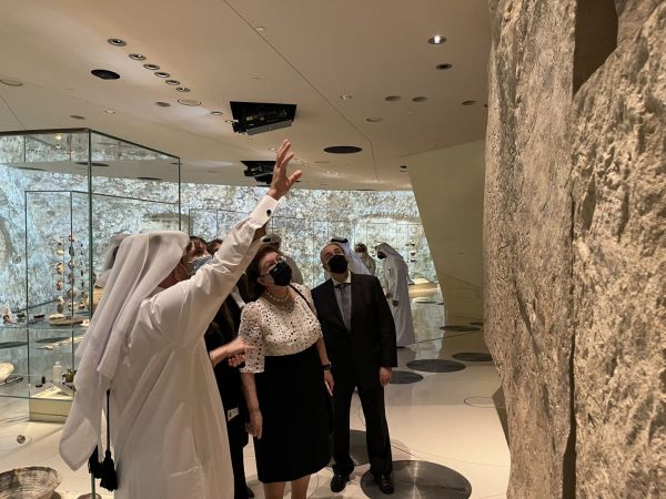 Στη συνέχεια, ο κ. Ahmad Al-Namla ξενάγησε τη Λίνα Μενδώνη στο νέο Εθνικό Μουσείο του Κατάρ, το οποίο παρουσιάζει την ιστορία της χώρας από την προϊστορική εποχή μέχρι σήμερα. Το Μουσείο, έργο του Γάλλου αρχιτέκτονα Jean Nouvel, εμπνέεται από τους κρυστάλλους της ερήμου και εκθέτει την ιστορία της χώρας, τόσο με έργα τέχνης και μνημεία, όσο και με πολυμέσα.